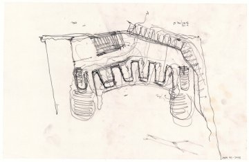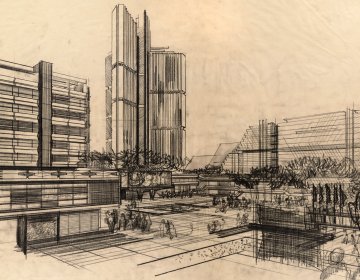 Abb.: Peter & Ute Baumbach. Skizze für Wettbewerb Stadtzentrum Gera, ca. 1967/68. IRS Erkner / Wissenschaftliche Sammlungen