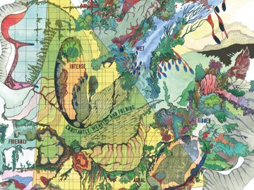 Abbildung: Jeremie Frank. Das Makrofon, 1981, Zeichenstift und Tusche, Airbrush und Tusche, Collage und Bleistift auf Karton, 81 × 111,4 cm