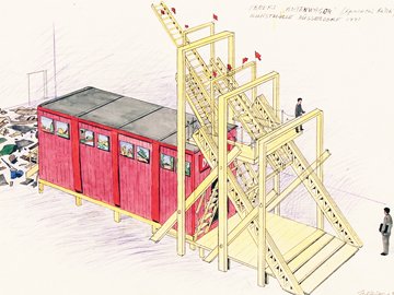 Doch um ein Illustrieren der DDR-Baugeschichte soll es in dieser Ausstellung nicht gehen. Hier wird nach den Machern von Architektur gefragt, nach Motiven, Visionen, auch Enttäuschungen mehrerer Generationen von Architektinnen und Architekten. Diese absolvierten alljährlich die Baufakultäten in Dresden, Weimar und Berlin und gerieten mit hochgesteckten Zielen in eine Berufspraxis, in der kreatives Entwerfen immer mehr zurückstehen musste zugunsten radikal technisierter Bauprozesse unter zunehmenden Sparvorgaben. Die Lust an frei entwickelten Gestaltideen wurde in verwegenen Wettbewerbsentwürfen oder als freie künstlerische Übung ausgelebt. In dieser Ausstellung interessieren also vor allem die Unterschiede: Professionelle Zeichnungen für konkrete Bauaufgaben stehen im Kontrast zu privaten Zeichenblättern, die oft über ganz anders gelagerte Visionen und Reflexionen Auskunft geben: hier Auftragsbilder, da Wunschproduktion!