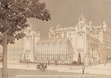 Abb.: Otto Wagner, Vorkonkurrenzprojekt für das Stadtmuseum am Karlsplatz, Ansicht von der Canovagasse, 1901; Wien Museum